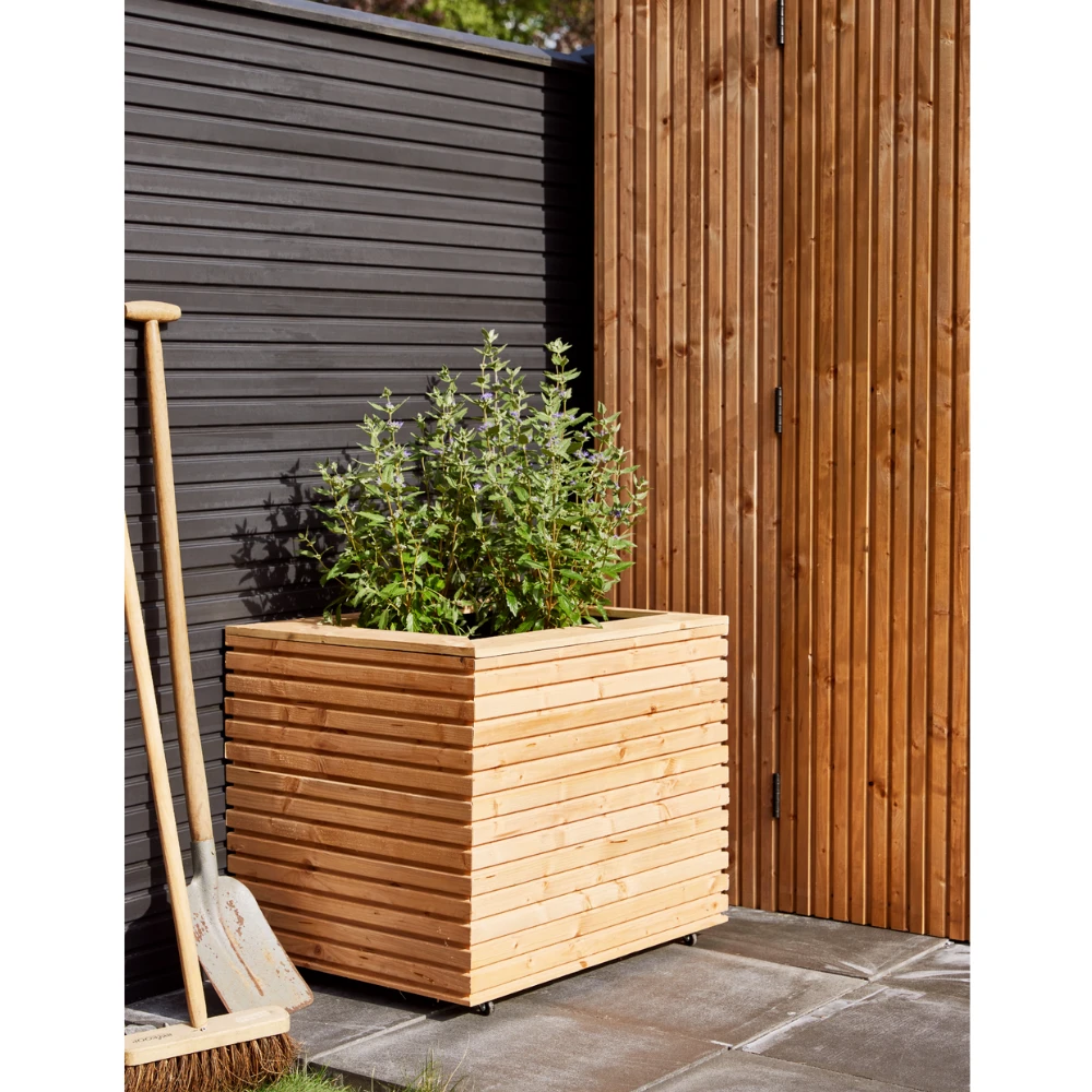 Wat deze bloembak echt onderscheidt, zijn de wieltjes aan de onderkant. Hierdoor kun je de bloembak eenvoudig verplaatsen en op verschillende plekken in je tuin of op je terras neerzetten. Of je nu de bloembak wilt verplaatsen om van de zon te genieten of om ruimte te maken voor een evenement, de wieltjes maken het gemakkelijk en moeiteloos.