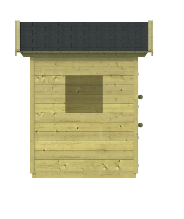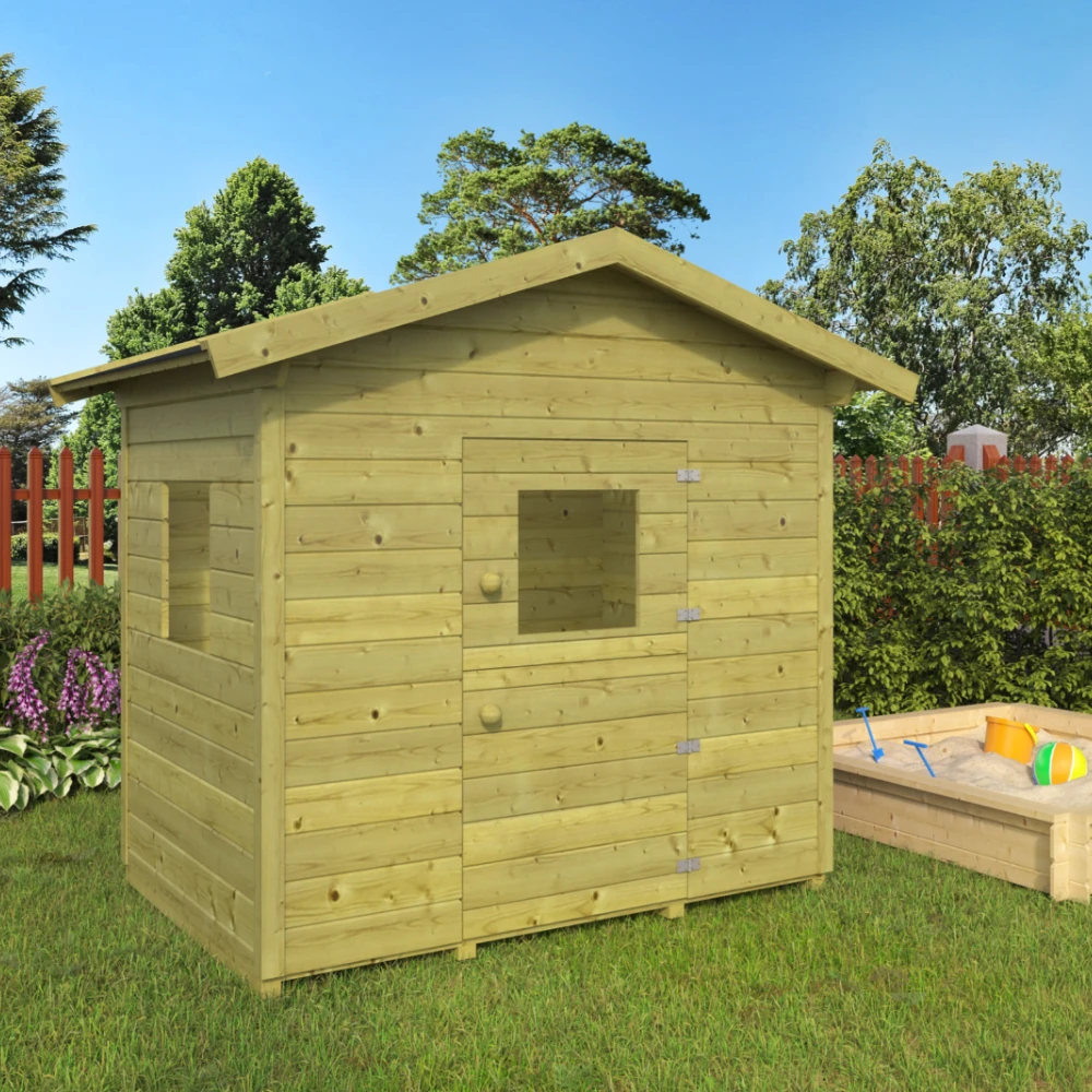 Dit speelhuisje wordt in voorgemonteerde wanden geleverd.